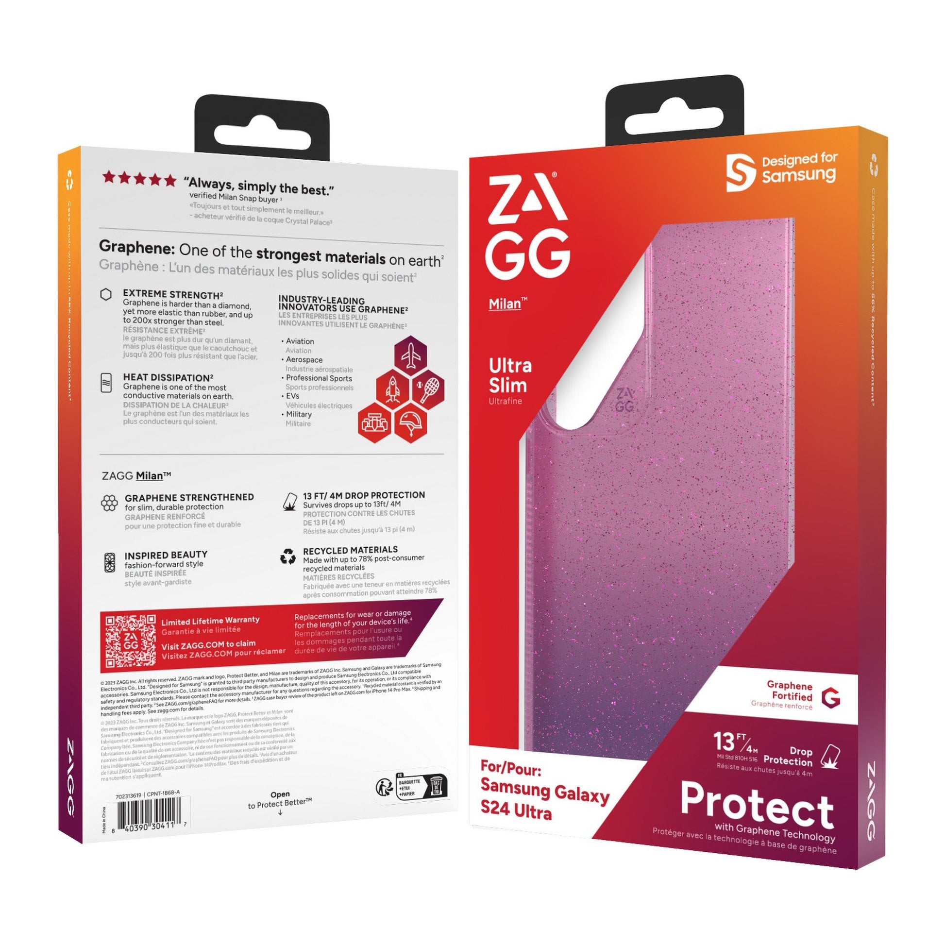 Samsung Galaxy S24 Ultra 5G ZAGG Graphene Milan Case - Glitter Pink